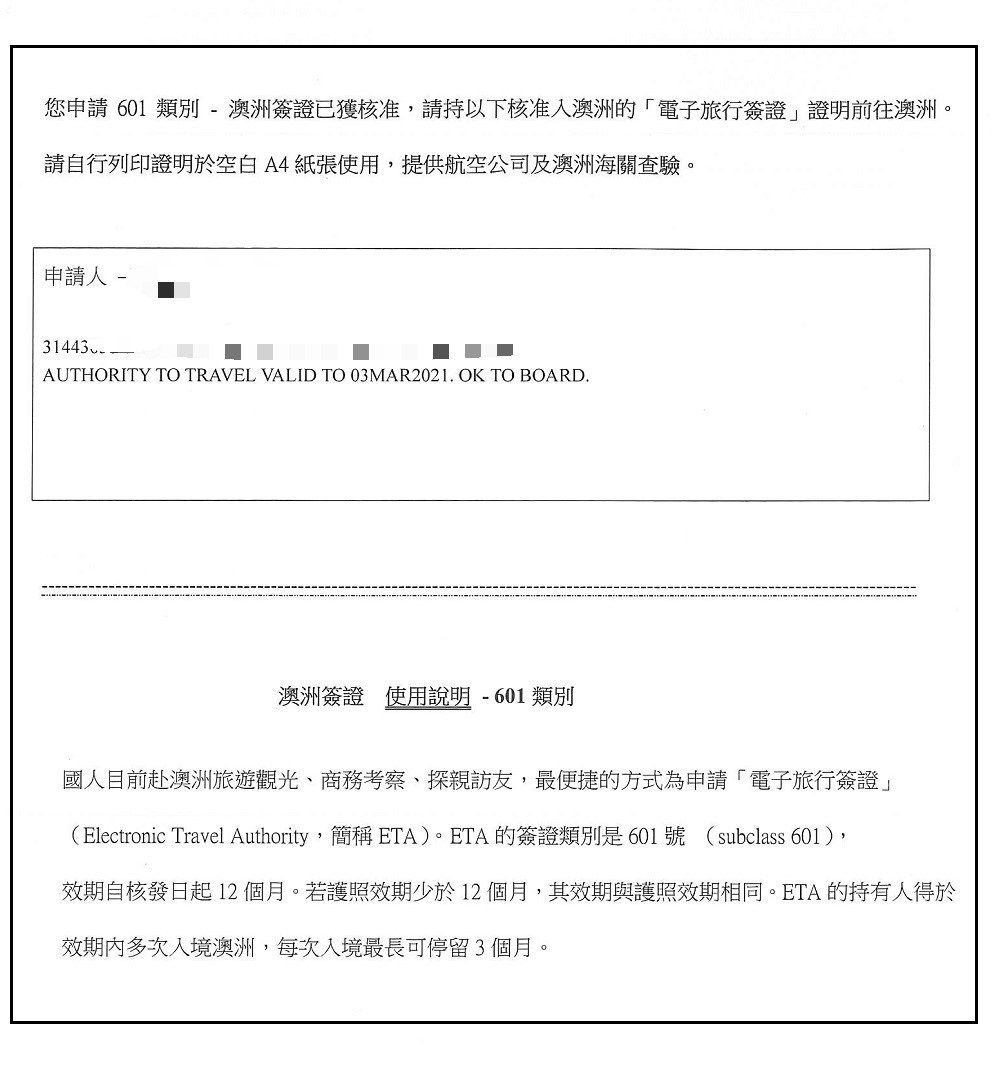 - 適用對象:前往澳洲觀光、訪友探親、短期商務或進行三個月內的短期課程。