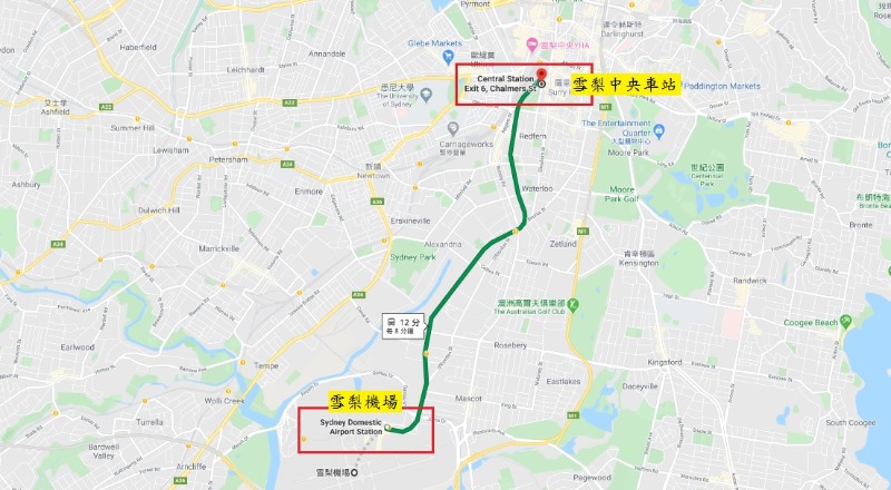 雪梨機場距離雪梨中央車站約8公里,距離不是很遠,搭車最快也只要15分鐘左右即可抵達雪梨市中心。