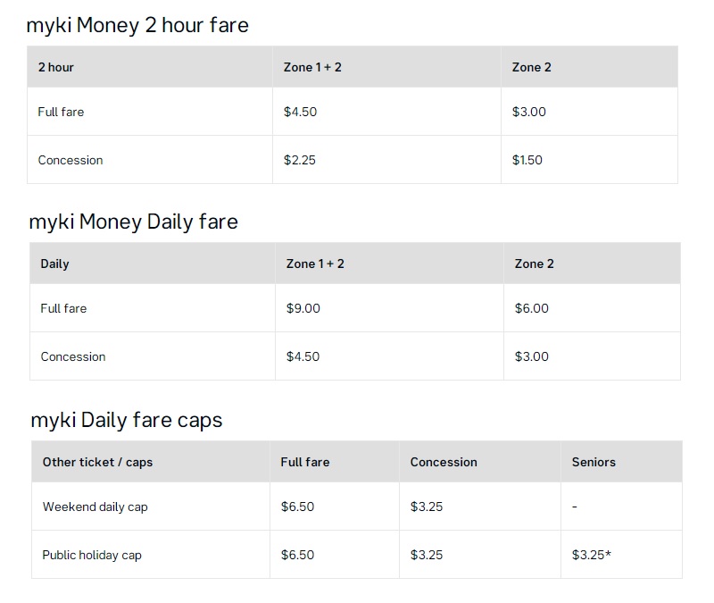 2.優惠卡(Concession):維多利亞州當地學生、身障者、澳洲其他地區的高齡者使用。購卡費3澳幣。