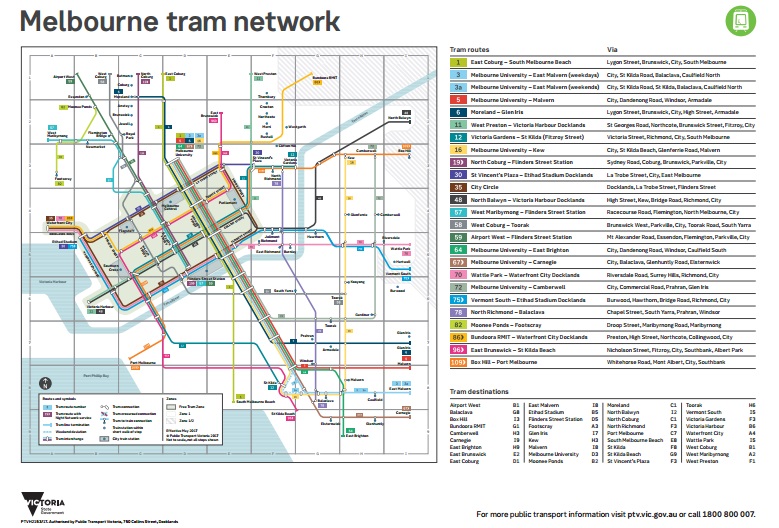 墨爾本的交通不論是火車、電車、巴士等等,都是以區域(ZONE)計算,在市區目前是分成FREE TRAM ZONE、ZONE1、ZONE2,郊區的部分分成ZONE3到ZONE13。