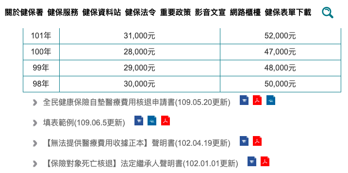健保局呼籲,申請核退是有時間限制,必需在急診或門診治療當天或出院當天起6個月內提出申請,逾期依法是不可受理,但遠洋漁船船員得自出海作業返國之日起6個月內提出申請。保險對象如果需要核退醫療費用,可檢附下列文件向健保局各轄區業務組辦理: